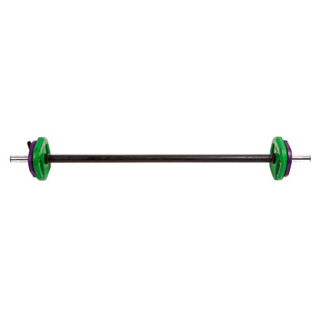 Pump set ligero. Compuesto por una barra de 140 cm, 2 platos de 2,5kg, 2 de 1,25kg y las pinzas. Barra de alzamiento muy ligera.