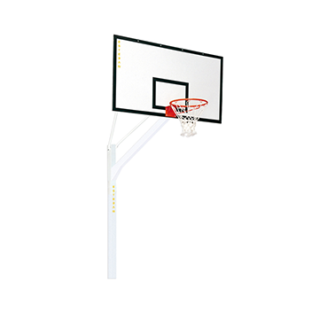 Juego de canastas baloncesto fijas. Fabricadas con poste cuadrado. Con una salida de 2,25 m desde el tablero hasta el poste de la canasta. Sistema de sujeción del aro directo a la estructura para evitar la rotura del tablero. Tablero fabricado en láminas de madera Okume.