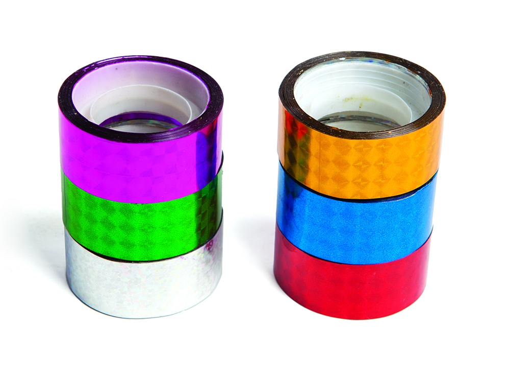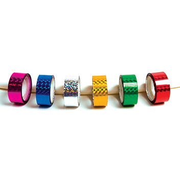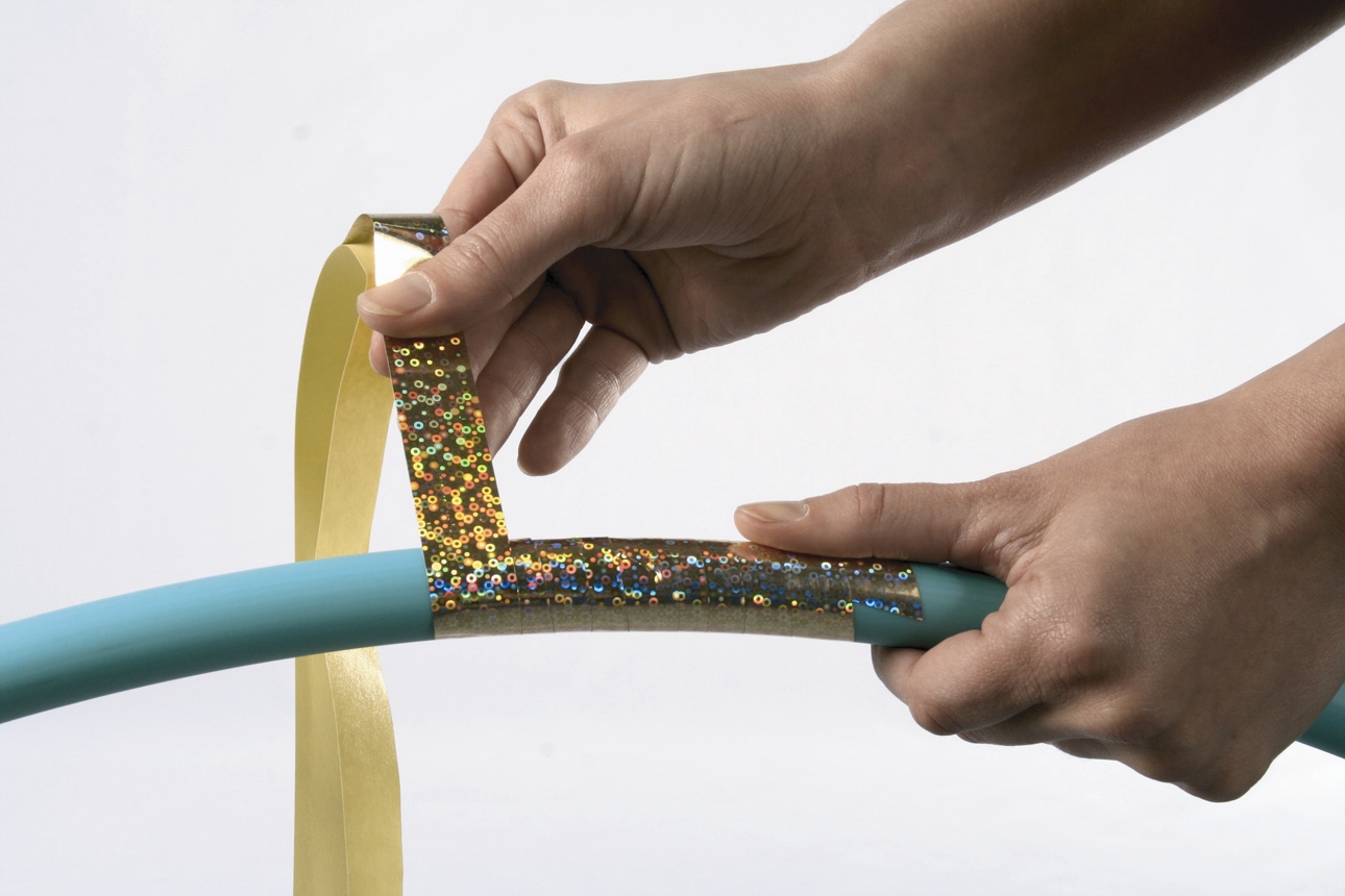 Cinta adhesiva para aro de gimnasia ritmica. Decoració plata. Rollo de11 mts por 2 cm de ancho.