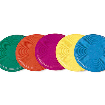 Disco volador (frisbee) caucho 180mm diam. Muy blando, se dobla con mucha facilidad, pero en el aire redondea por la fuerza ejercida hacia fuera.