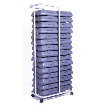 Estantería para steps pequeños. Medidas del step: 71 x 35,5 x 15 cm. Capacidad para 16 steps.