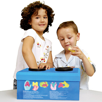 Caja de sensaciones táctiles. Figuras, letras y números.