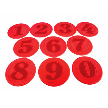 Set de 10 piezas de circulos con números del 0 al 9. Medidas: 220 mm diámetro.