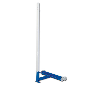Juego de postes badminton reglamentarios de 40x40mm en acero. Equipados con base contrapesada provista de ruedas para permitir su traslado con facilidad y provistos en su parte delantera de tres puntos de anclaje para la sujeción de la red. Altura 1,55m.