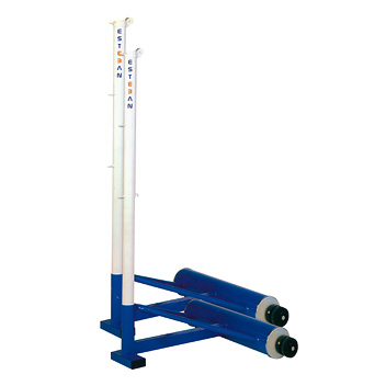 Juego de postes para badminton de competición, con plataforma inferior contrapesada equipada de ruedas para permitir su traslado con facilidad. Con polea superior que permite conseguir una perfecta tensión de la red. Diámetro del poste 50 mm. Altura 1,55 mts. Plataforma 810x850 mm. Ruedas 80 x 40 mm.