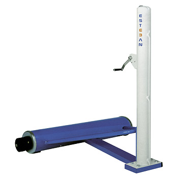 Postes de tenis trasladables con base contrapesada. Provistos de una plataforma inferior contrapesada equipada con ruedas para facilitar su traslado. Sistema de tensión de la red integrado en uno de los postes y consta de una polea-guía en la parte superior y un torno con bloqueo automático para evitar que la red se destense durante el juego.