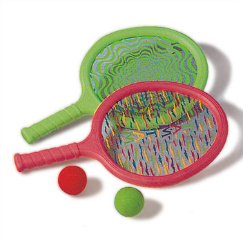 Juego de raquetas Tam-Tam con pelota. Al golpear con la raqueta se produce un sonido que anima el juego.