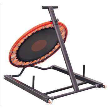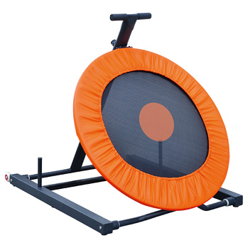 El rebounder combina un trampolín con una base antideslizante para realizar ejercicios de retorno con los balones medicinales. Puede ajustarse el ángulo del rebote.