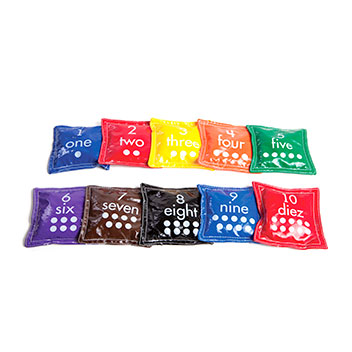 Saquitos número. Set de 10 unidades. Medidas: 11,5 x 11,5 cm. En castellano por una cara, en inglés por la otra. Peso 70 Gr cada saquito