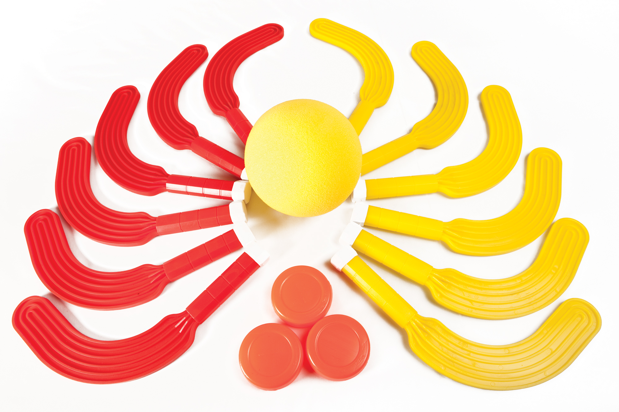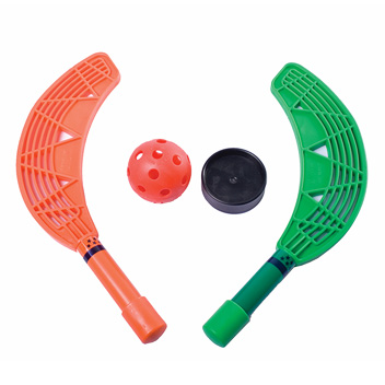 Set de Mini hockey. Contiene 12 palas, 1 pelota y 3 pastillas.