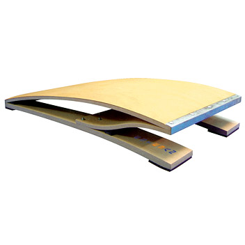 Trampolín para salto de competión. Fabricado en láminas de madera de haya prensadas a 250 Tm/cm2. Sistema de salto formado por una ballesta en madera laminar de gran resistencia y elasticidad. Medidas: 1200x600x180mm. Acabado en madera.
